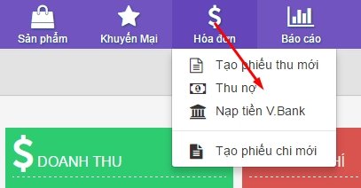 - V.Bank: Trừ bằng thẻ tài khoản V.Bank ( chỉ khi bật cho phép thanh toán công nợ trong Thiết lập tham số )