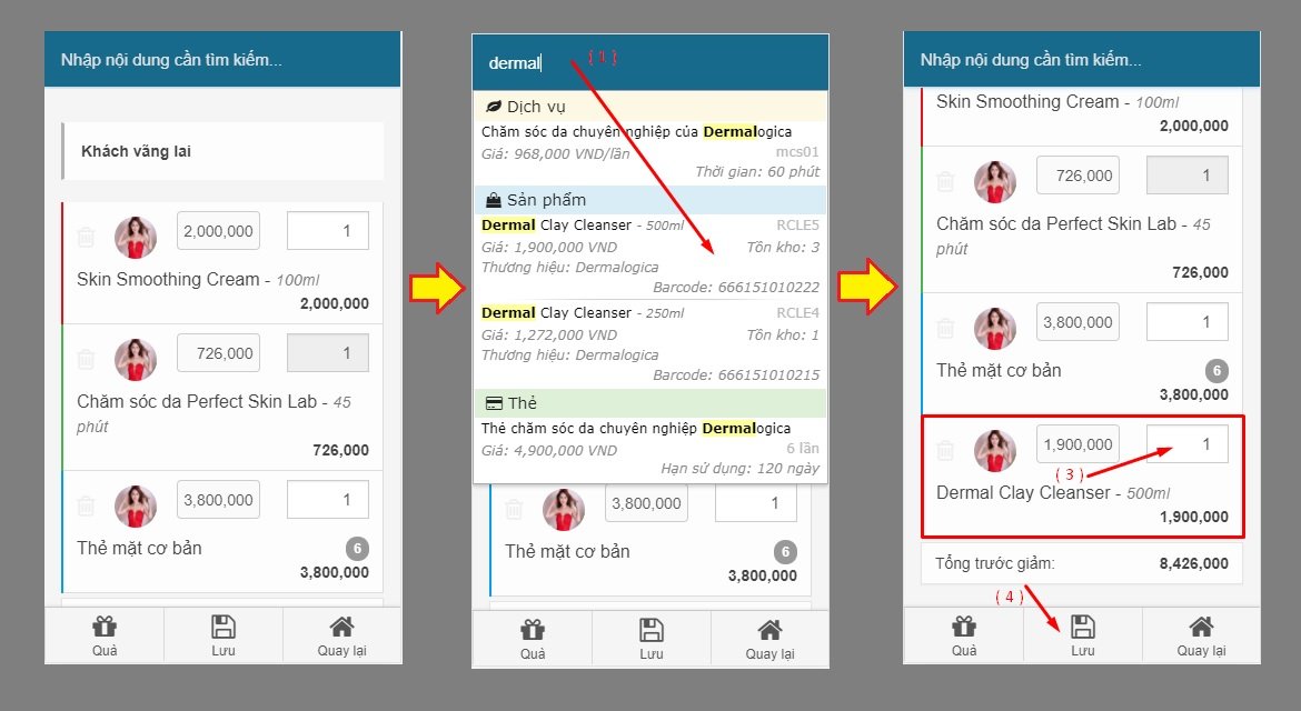 - Nhập tên Dịch vụ/Sản phẩm hoặc Thẻ trọn gói muốn thêm